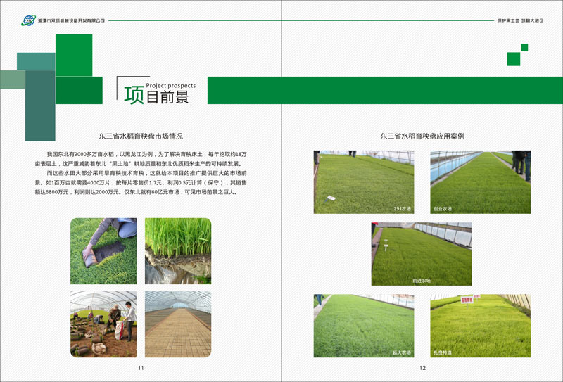 而這些水田大部分采用旱育秧技術(shù)育秧,這就給本項(xiàng)目的推廣提供巨大的市場(chǎng)前景。如1百萬(wàn)畝就需要4000萬(wàn)片,按每片零售價(jià)1.7元、利潤(rùn)0.5元計(jì)算(保守),其銷售額達(dá)6800萬(wàn)元,利潤(rùn)則達(dá)2000萬(wàn)元。僅東北就有60億元市場(chǎng),可見市場(chǎng)前景之巨大。