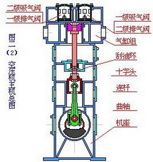 活塞式空氣壓縮機的工作原理:活塞式空壓機在氣缸內(nèi)作往復(fù)運動的活塞向右移動時,氣缸內(nèi)活塞左腔的壓力低于大氣壓力,吸氣閥開啟,外界空氣吸入缸內(nèi),這個過程稱為壓縮過程。當(dāng)缸內(nèi)壓力高于輸出空氣管道內(nèi)壓力后,排氣閥打開。活塞的往復(fù)運動是由電動機帶動的曲柄滑塊機構(gòu)形成的。曲柄的旋運動轉(zhuǎn)換為滑動--活塞的往復(fù)運動。這種結(jié)構(gòu)的壓縮機在排氣過程結(jié)束時總有剩余容積存在。在下一次吸氣時,剩余容積內(nèi)的壓縮空氣會膨脹,從而減少了吸入的空氣量,降低了效率,增加了壓縮功。